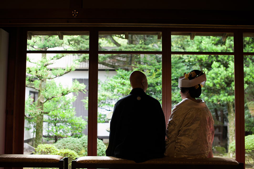 尾山神社での挙式、金渓閣でのご会食はトラディショナルで正統派の和婚で、おふたりの凛としたイメージにぴったりの結婚式でした。