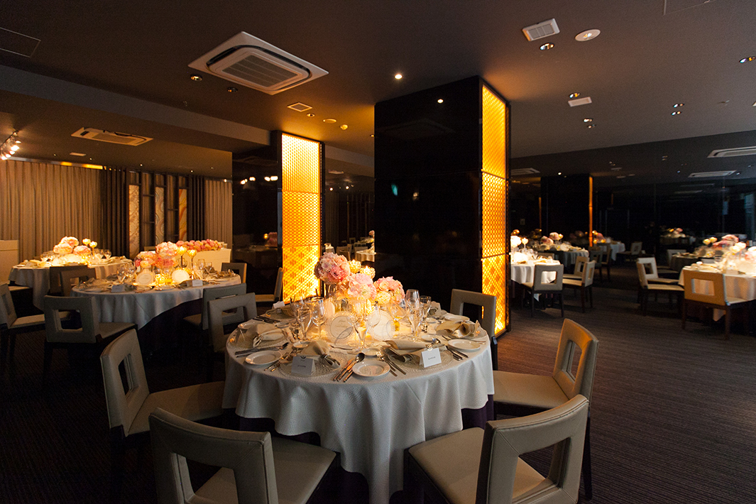 当初、場所に関するイメージはホテル以外のゲストハウスでお考えでしたが、遠方からお見えのゲストの利便性も考慮され、自由度が高くプライベート感が味わえるホテルザスクリーンを1日貸切り、披露宴、2次会1部、2部とお顔ぶれを変えた三部構成のパーティとなりました。