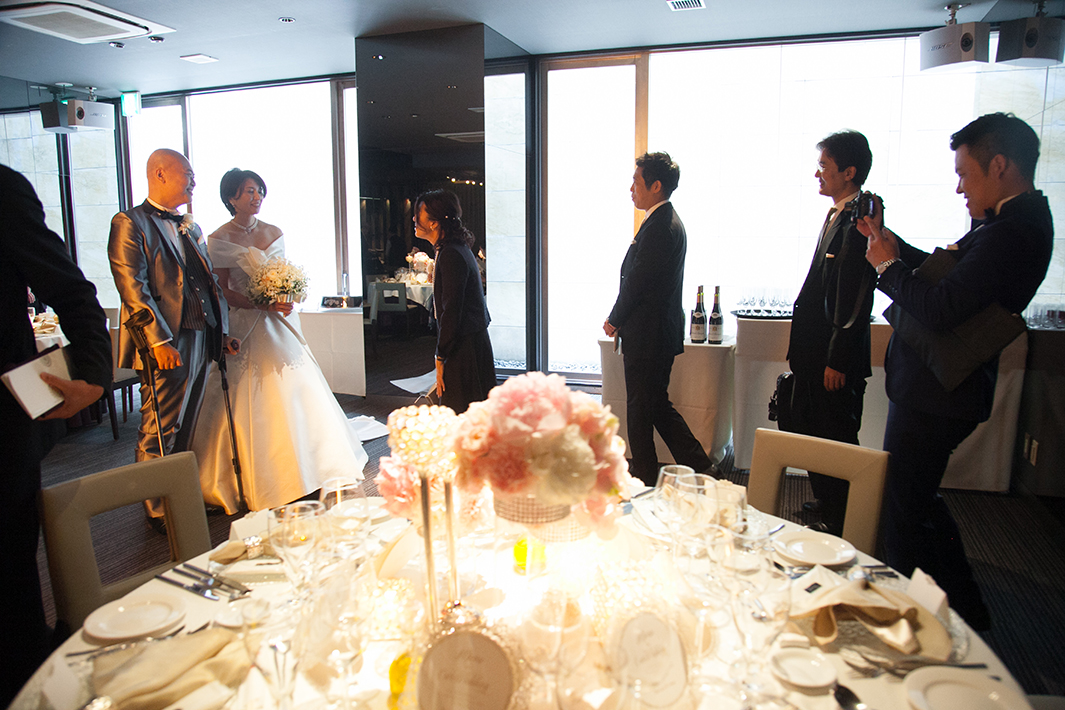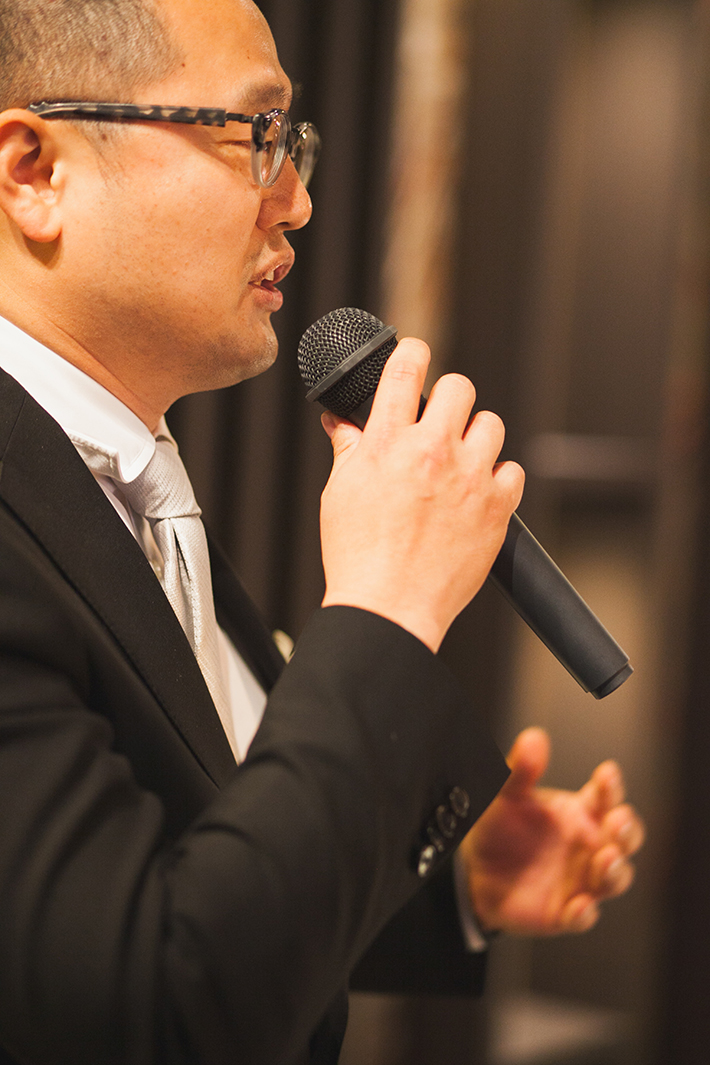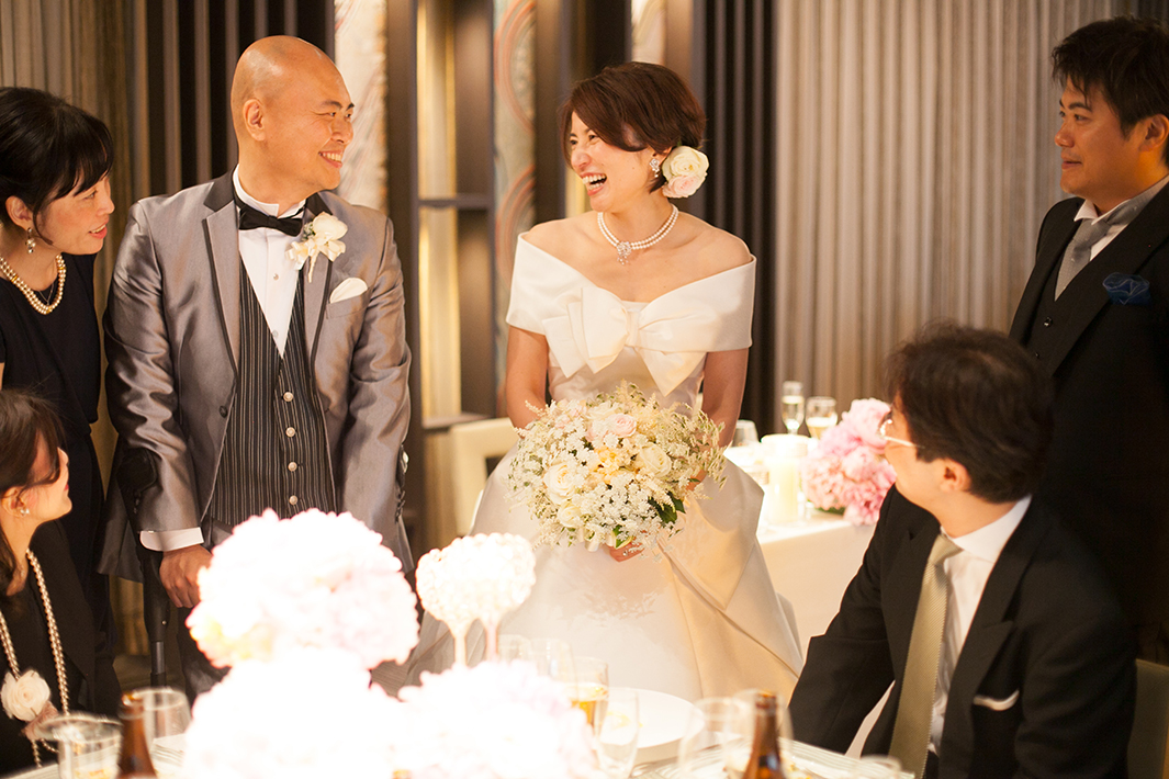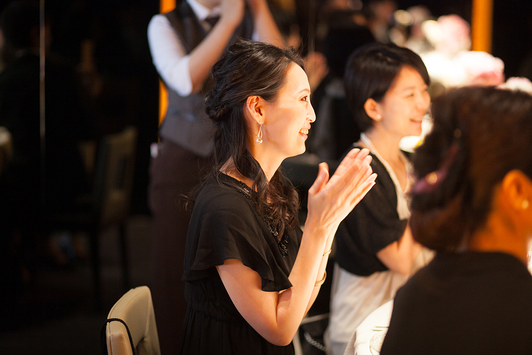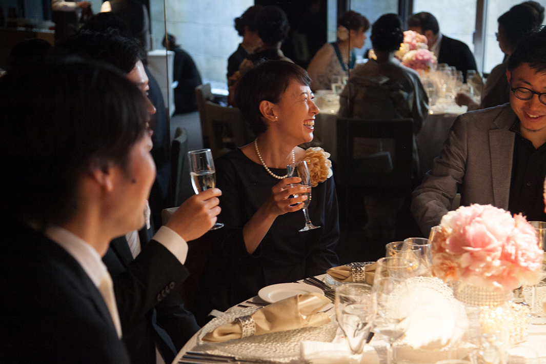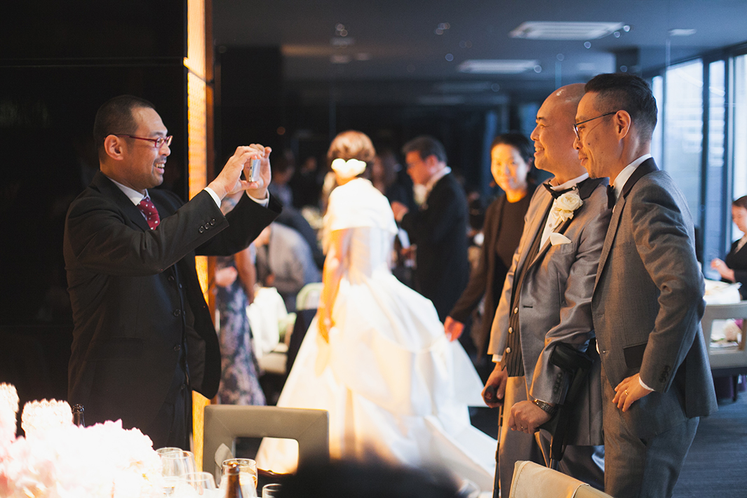 パーティは、おふたりが吟味されたお料理を楽しんでいただくことと、ゲストと個々に自由に過ごしていただく時間を中心に構成していましたが、おふたりとゲストの一体感がとても心地よい時間が流れています。「やっと皆さんにふたりでご挨拶出来ました」というおふたりの思い、「本当に良かったね。おめでとう」というゲストの思いが会場に溢れています。