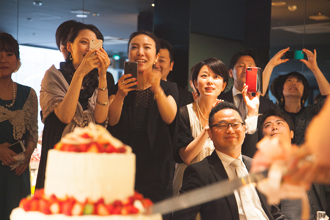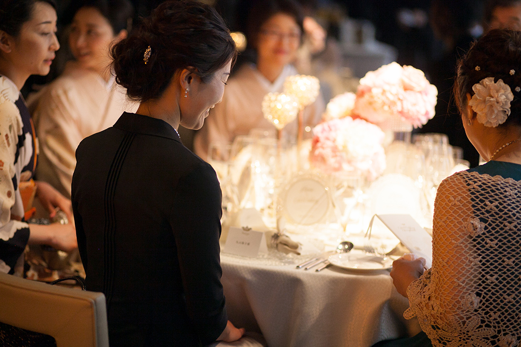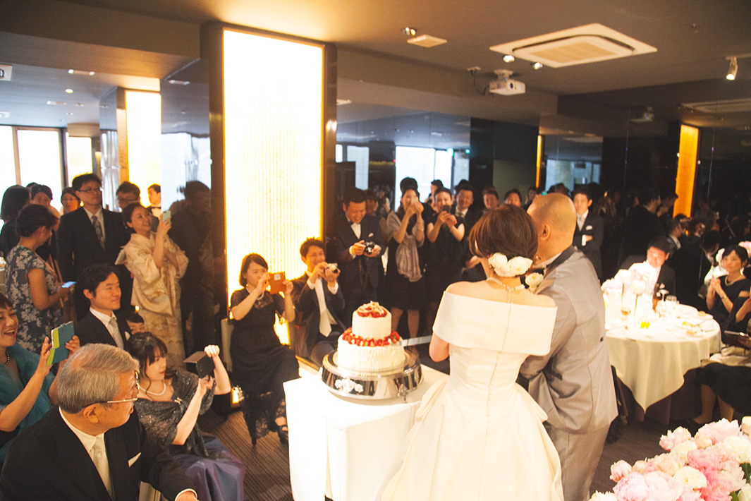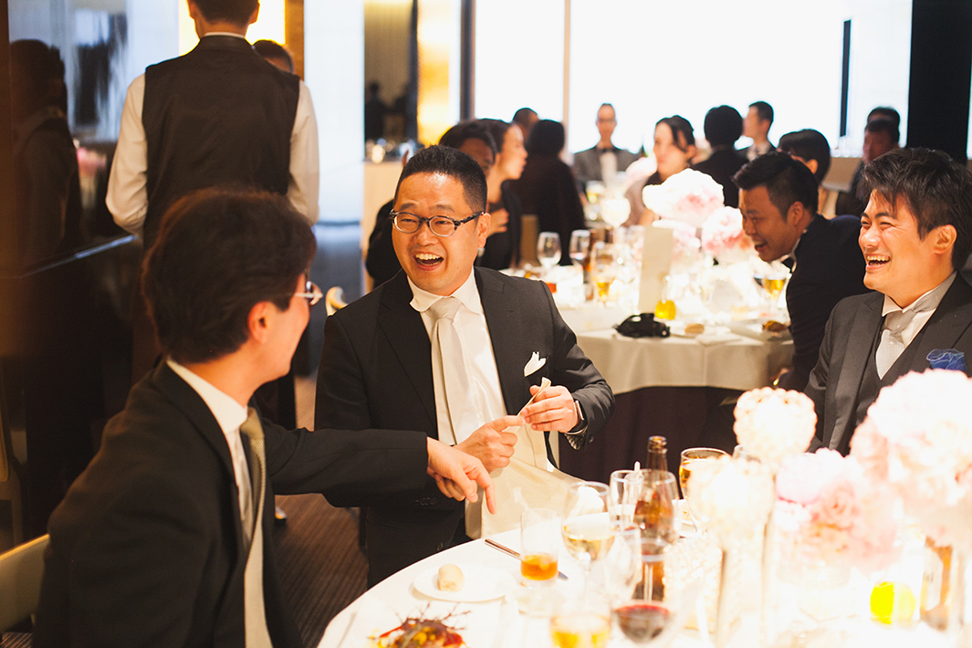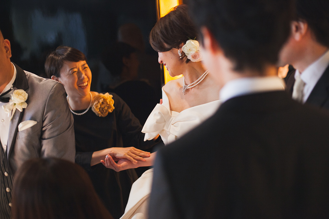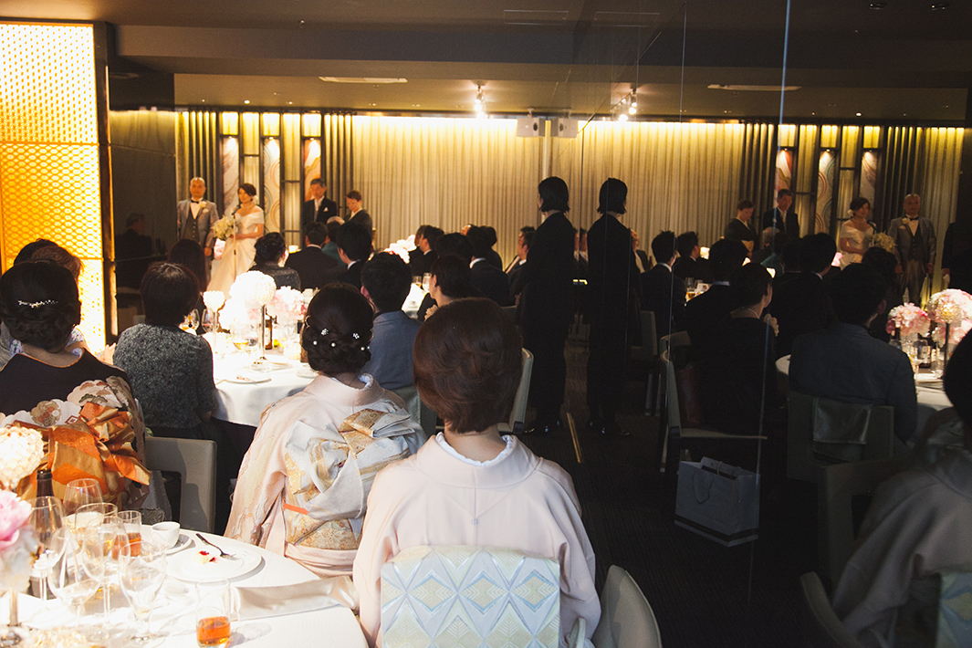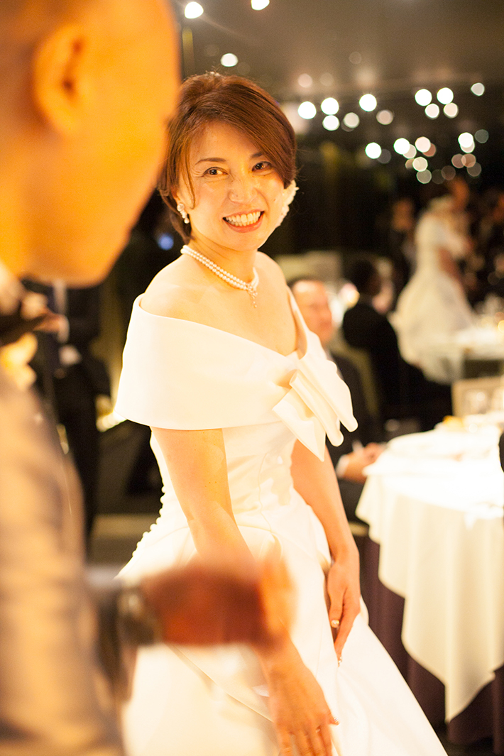 パーティは、おふたりが吟味されたお料理を楽しんでいただくことと、ゲストと個々に自由に過ごしていただく時間を中心に構成していましたが、おふたりとゲストの一体感がとても心地よい時間が流れています。「やっと皆さんにふたりでご挨拶出来ました」というおふたりの思い、「本当に良かったね。おめでとう」というゲストの思いが会場に溢れています。