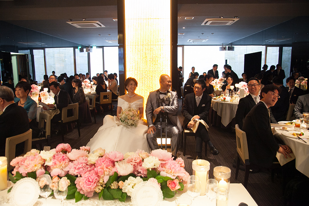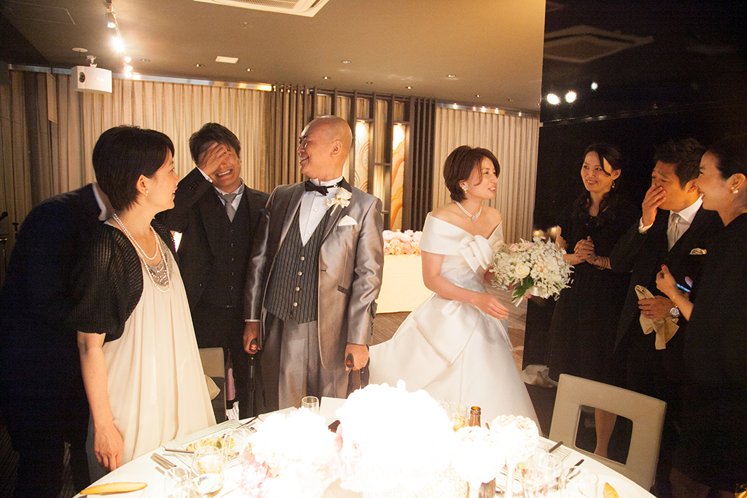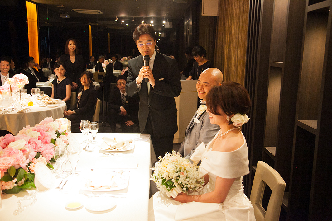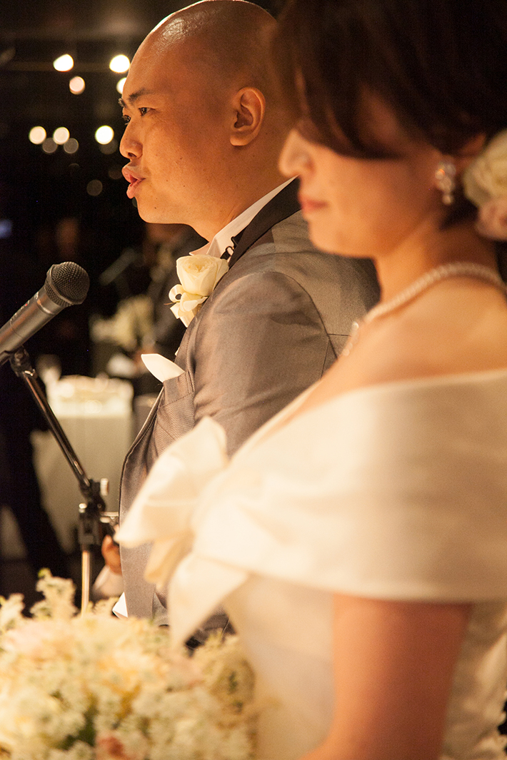 飾らない言葉で今のお気持ちを伝えられたおふたり。そしてゲストも思い思いのお言葉でエールを送られた披露宴。この披露宴会場の中にたくさんの人生、それぞれの思いが交差して、「おめでとう」と「ありがとう」にまとまって、それをかみしめておられる様子のおふたりでした。