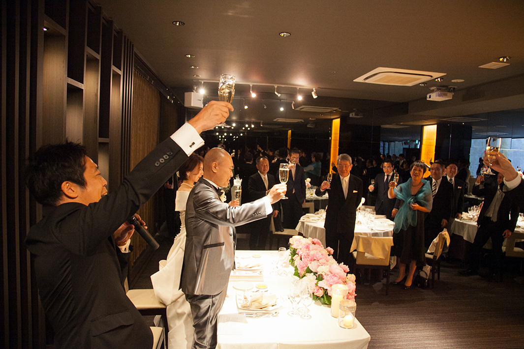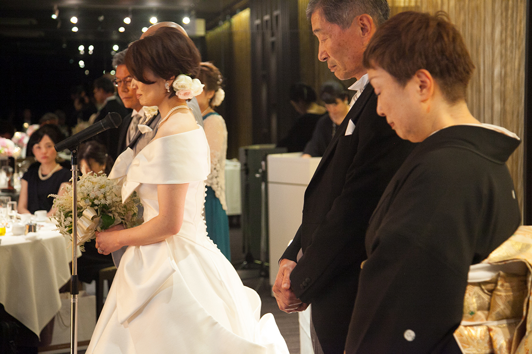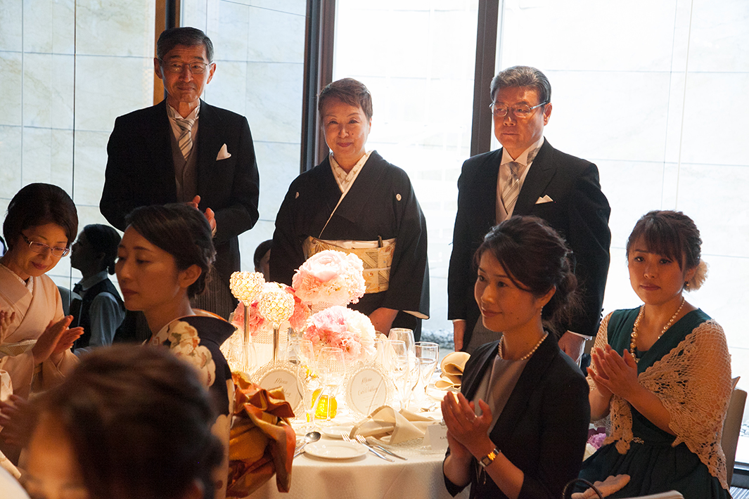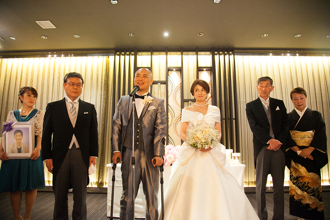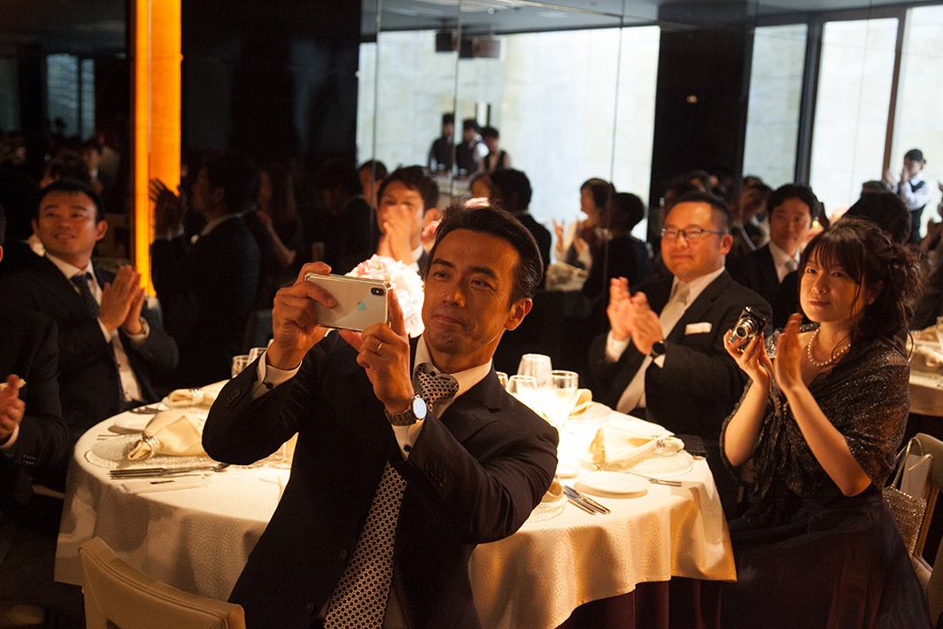 飾らない言葉で今のお気持ちを伝えられたおふたり。そしてゲストも思い思いのお言葉でエールを送られた披露宴。この披露宴会場の中にたくさんの人生、それぞれの思いが交差して、「おめでとう」と「ありがとう」にまとまって、それをかみしめておられる様子のおふたりでした。