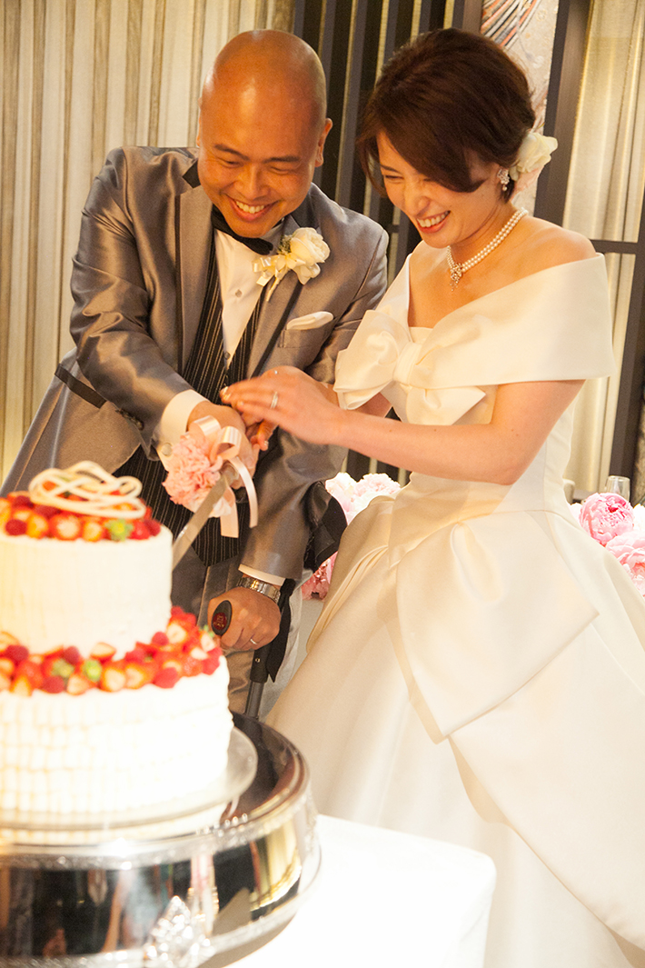 具体的なご準備が始まると、次々と新しいおふたりの魅力がプラスアルファされていきました。新郎様は実は大のスィーツ好き。甘いものを召し上がるときのお顔は少年そのもの。
