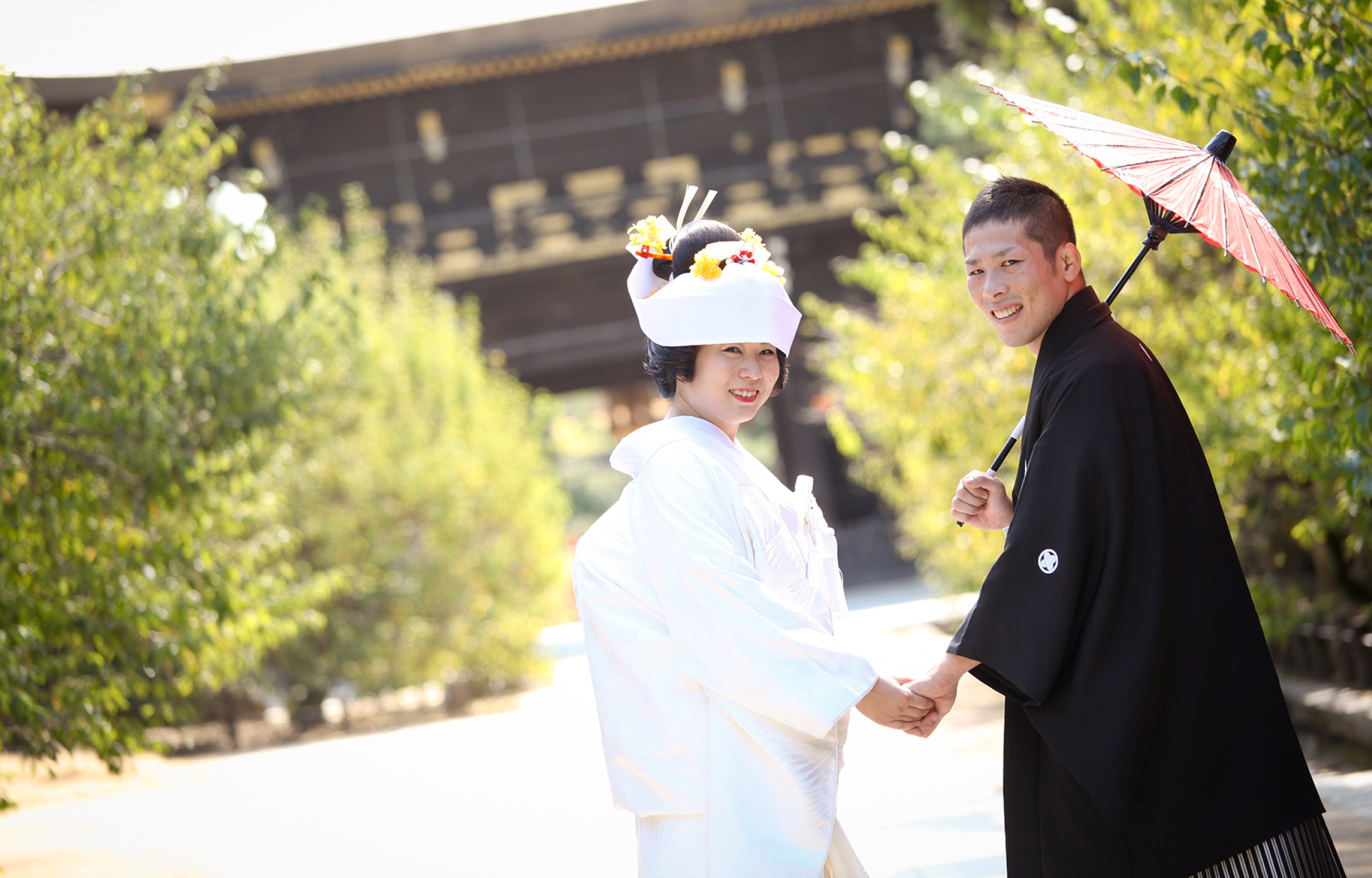 当初、新郎様のご実家に近い岡山での結婚式も検討されながら、「和婚といえば京都!」、と最終的には新郎家は遠方から駆けつけてくださる、ご親族のみの挙式・披露宴となりました。