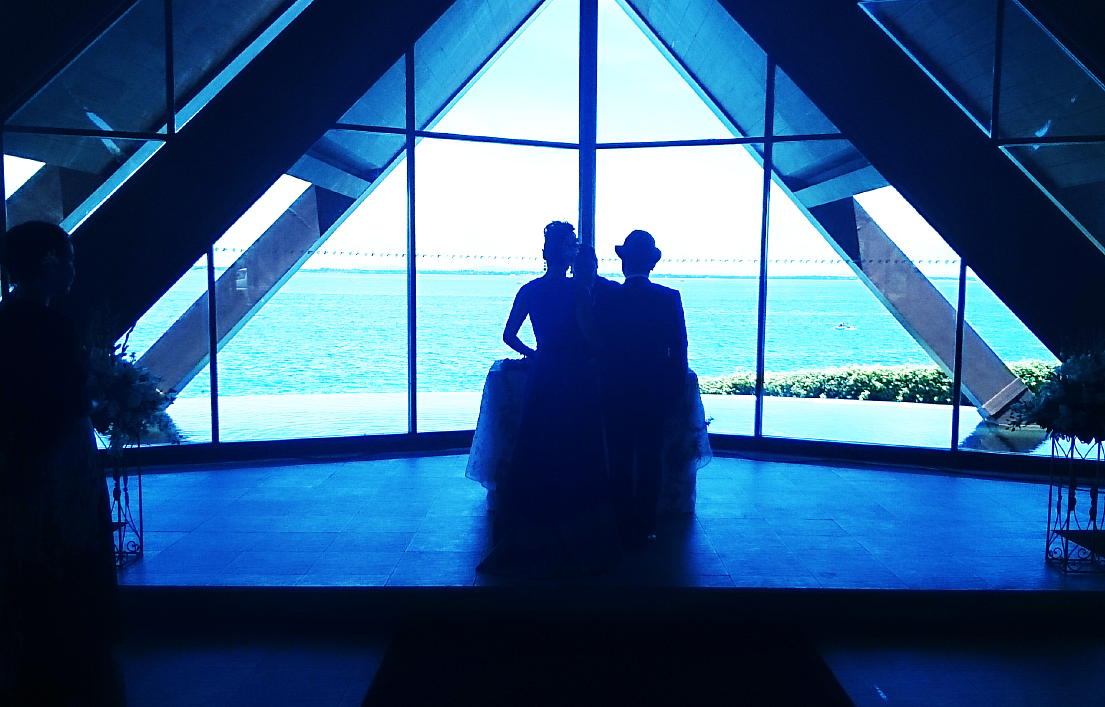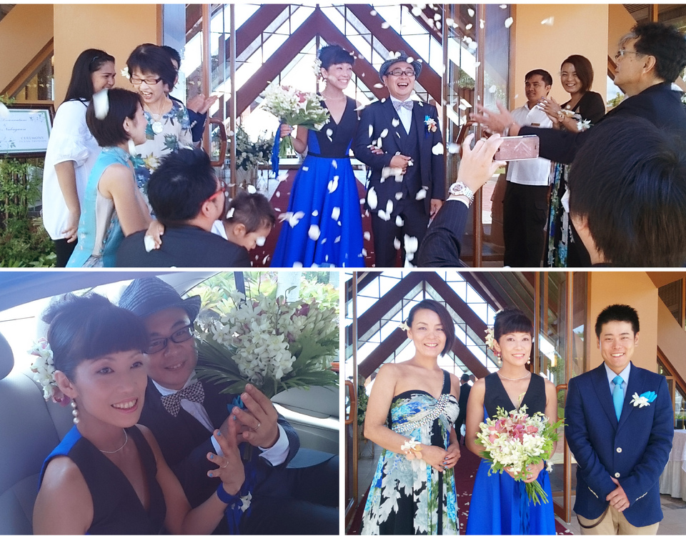 IT関係の企業に勤務の新郎とフローリストの新婦は大学時代の同級生。本物志向で好きなものを明確にお持ちで大人なおふたりの希望は、「おおげさな結婚式はしたくないけれどチョイスするものにはこだわりたい」。国内でのウェディングプランも浮上しながら、新郎父様がセブ島に移住されていることもあり、最終的には海外挙式でご決定。親族・友人参加の結婚式となりました。