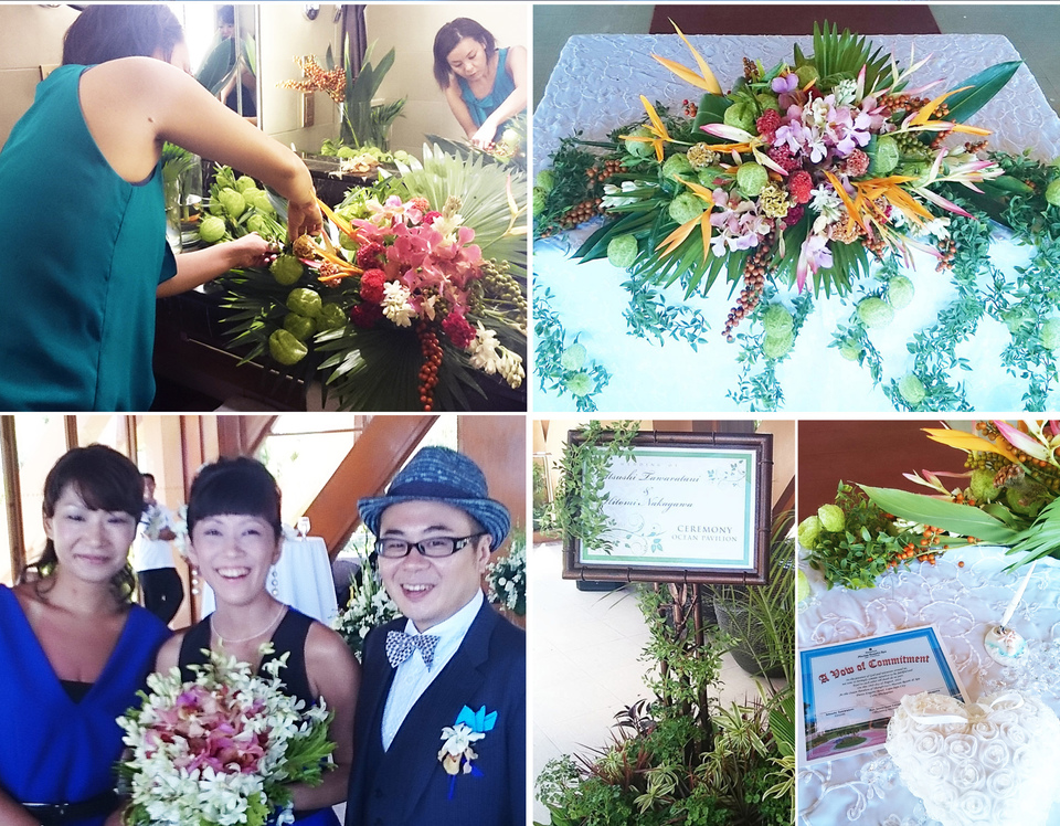 - 大好きな海と花、そしてゲストに囲まれたプライベートウェディング ~父の住む南の島の楽園でゲストとともに海を満喫したい~ ~装花はすべてオリジナル、自分たちでデザイン/制作したい~