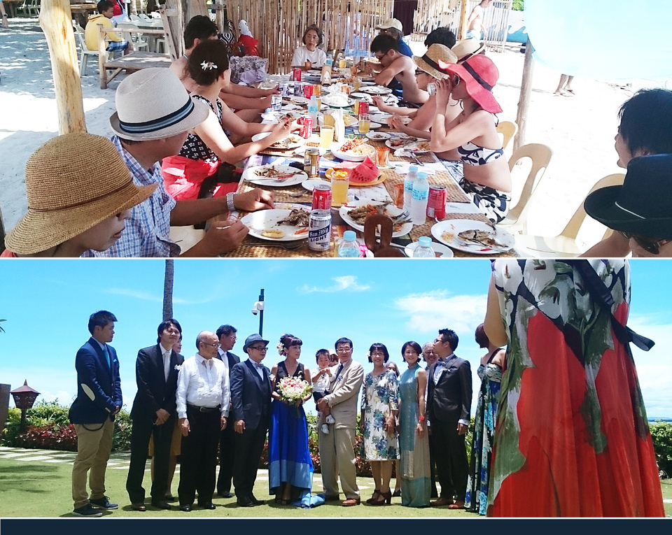 - ◉前夜のリハーサルディナー(ゲストの顔合わせパーティ) 「ホテルシャングリラマクタンリゾート&スパ」内レストランアクア ◉挙式後のパーティ 「ボラカイ島周辺の離島にアイランドホッピング」