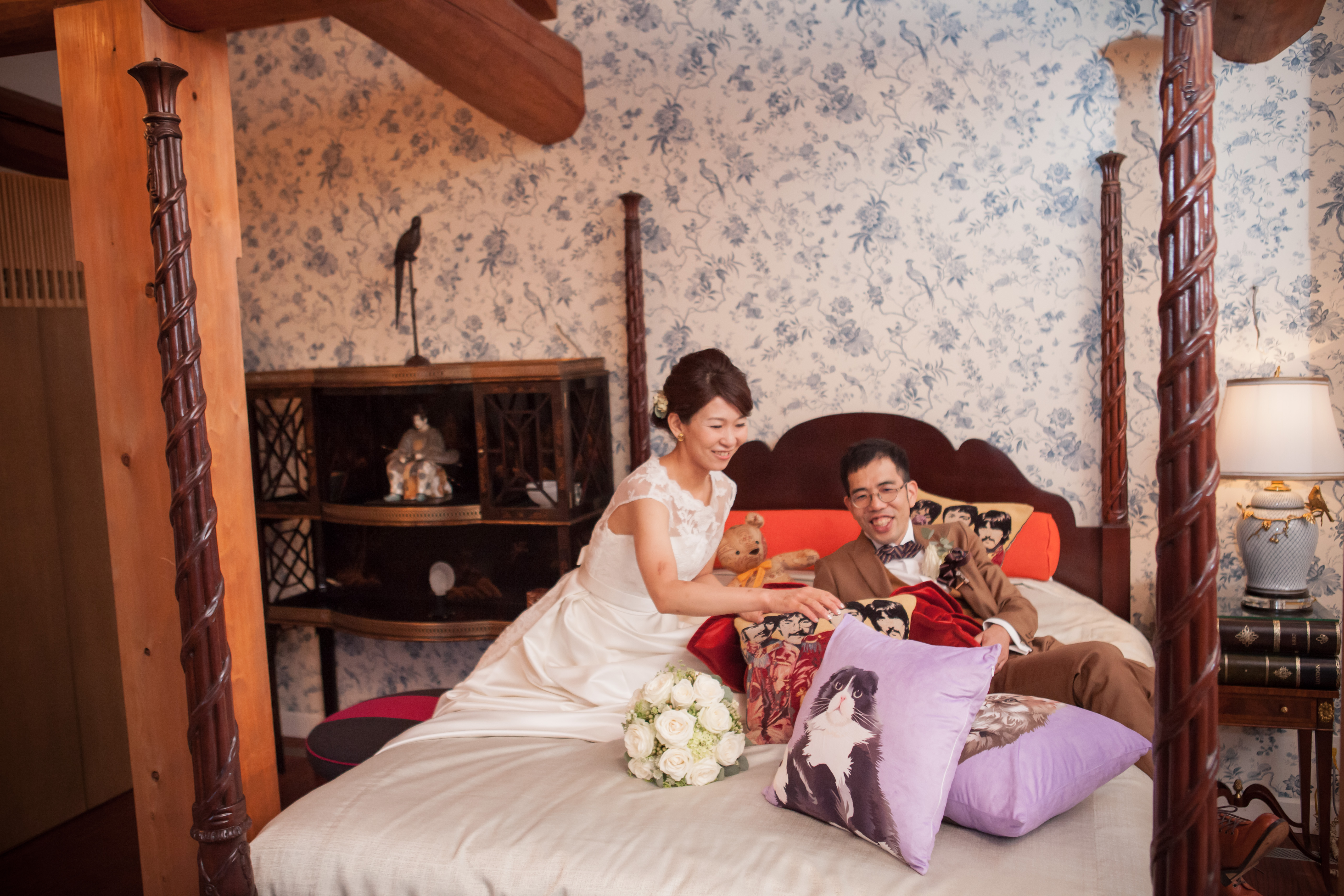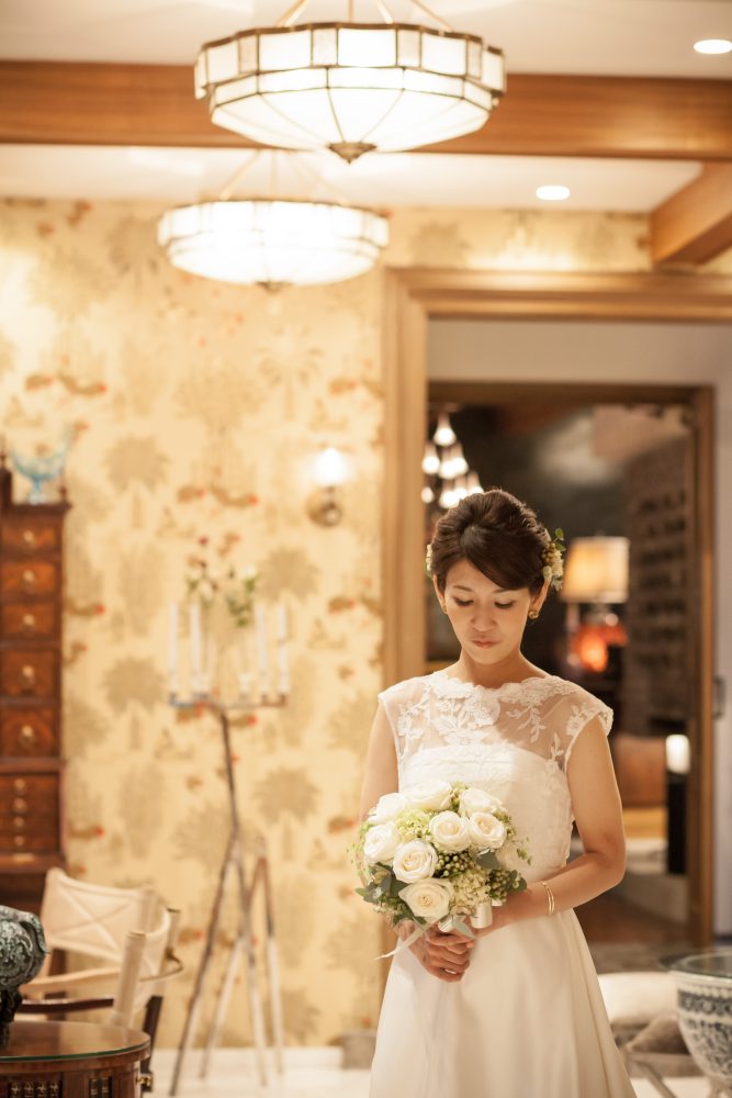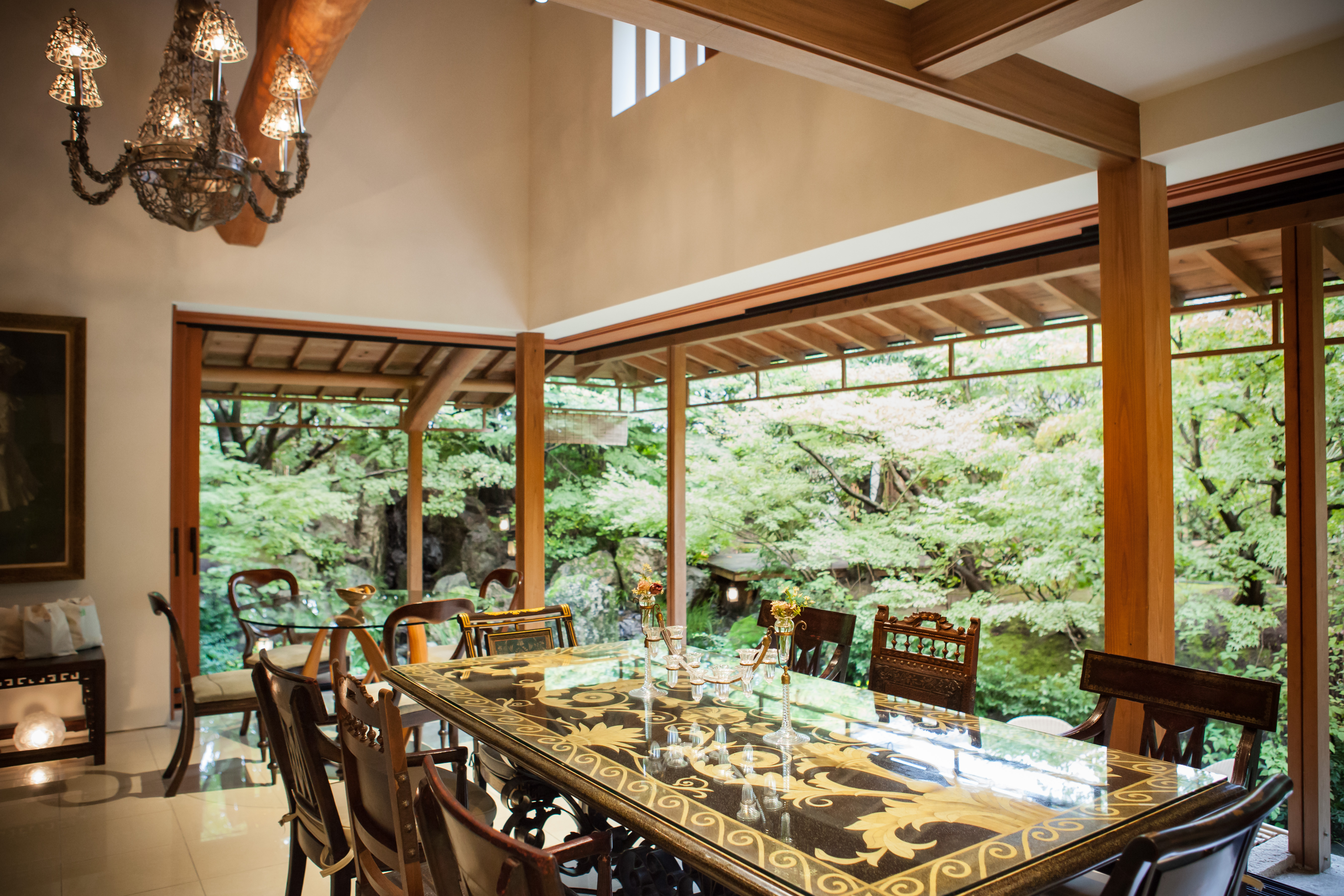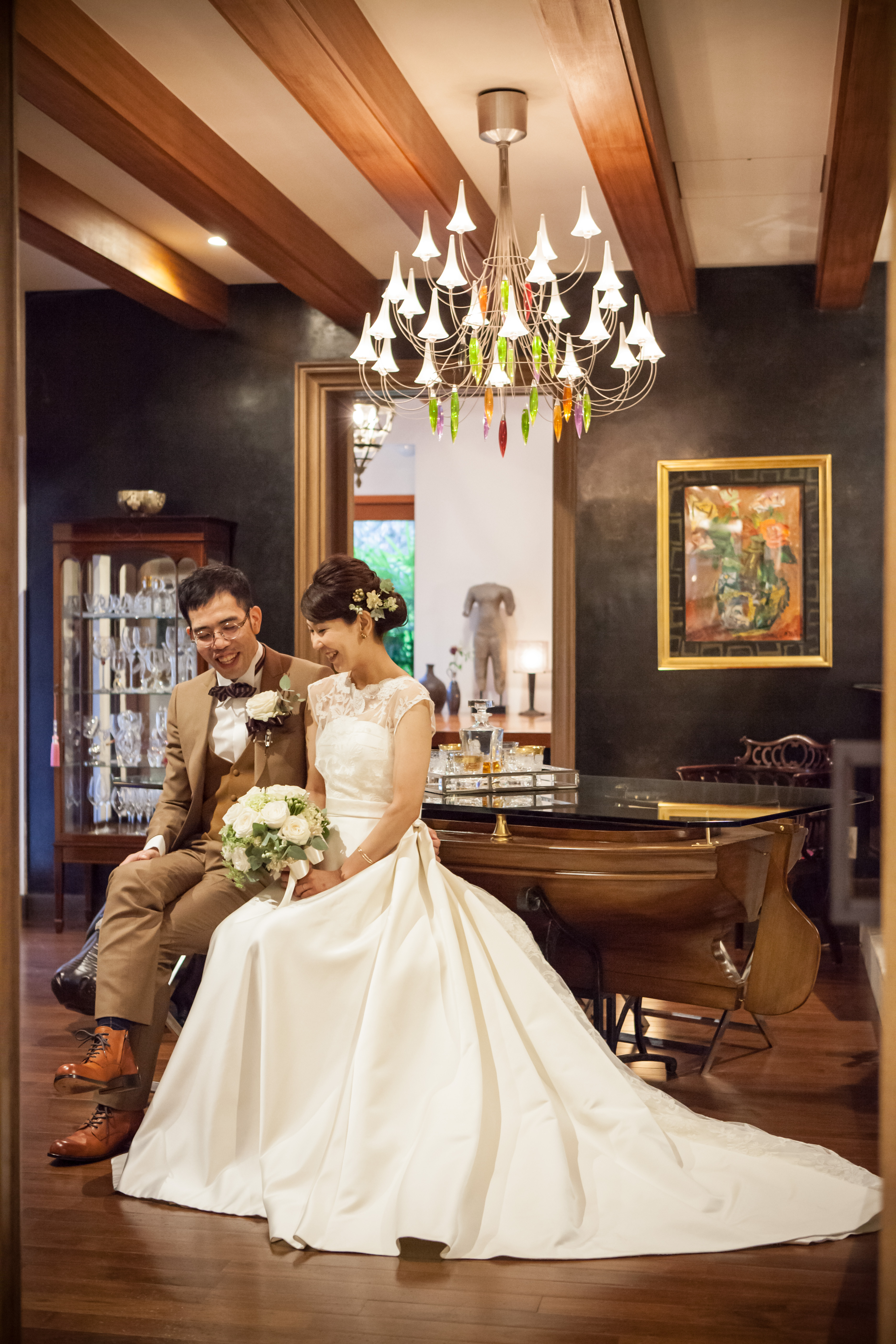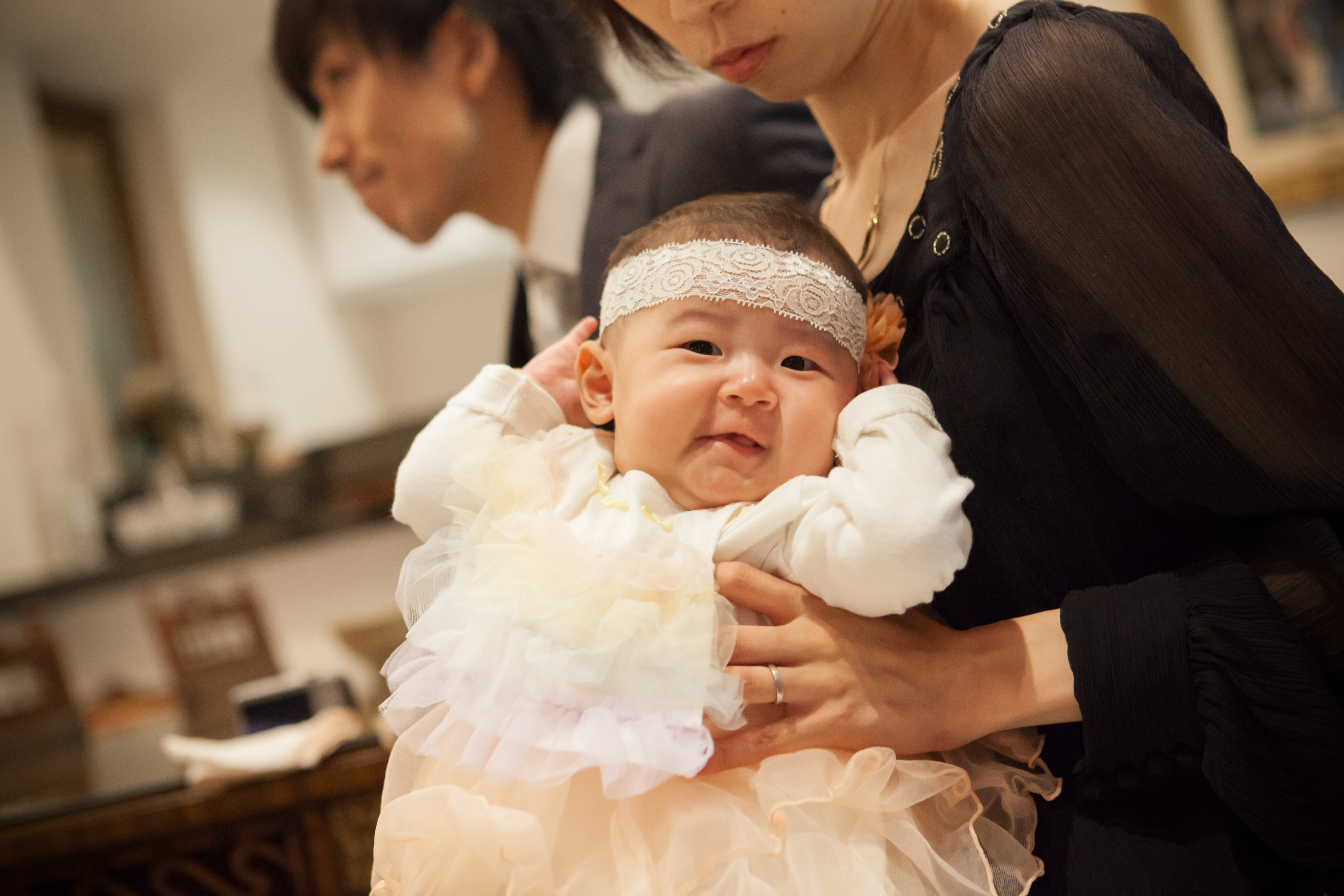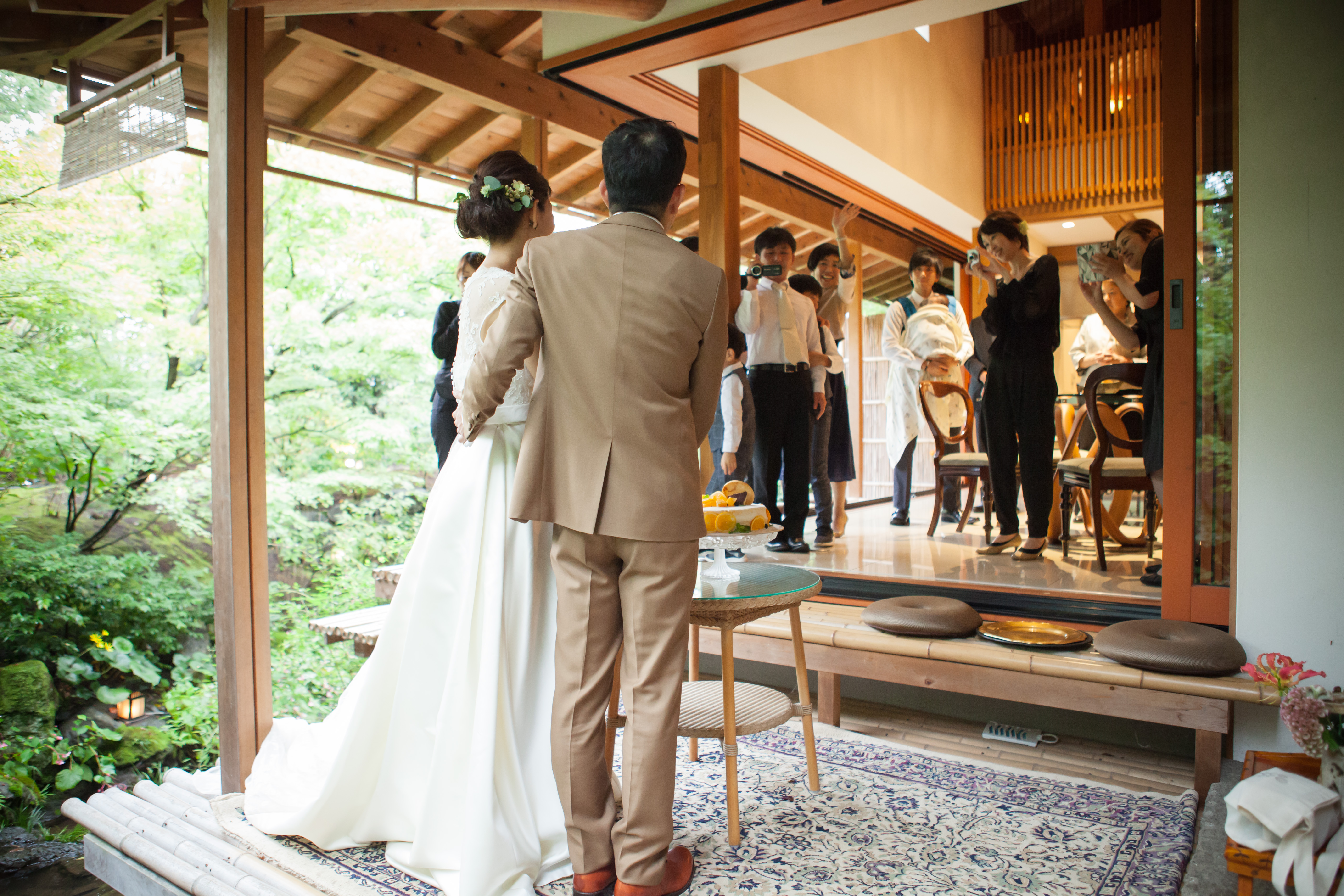 外観は和の趣でありながら、邸宅の中はヨーロピアンとアジアンスタイルがミックスされた邸宅。おしゃれなバスタブが備わったベッドルームでお支度スタート。まもなくご家族がひとりふたりとご到着。お酒を楽しむお父様。会話が弾むお母様。子供たちはそれぞれの部屋を探検・・・、とカクテルパーティはメインルームでそれぞれが過ごされました。