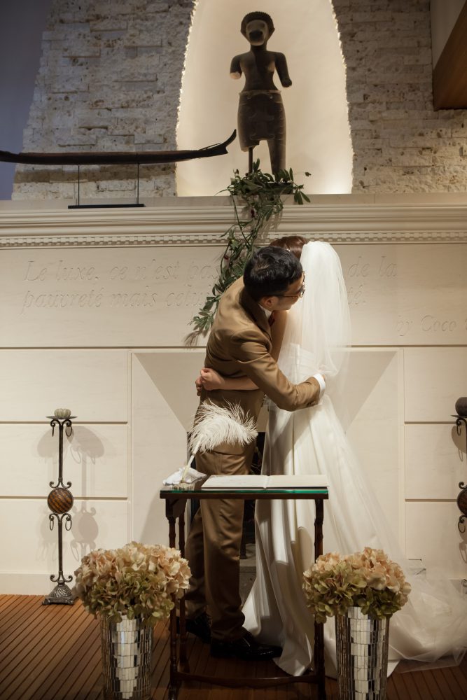 ベールアップのあとのキスの代わりに、ハグ。とてもおふたりらしいシーンでした。