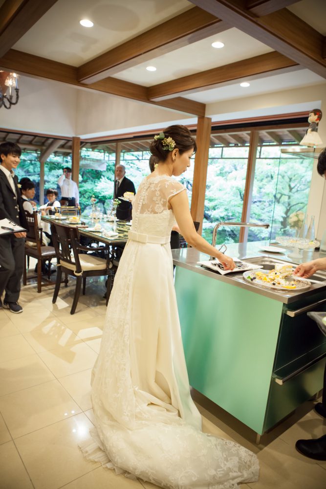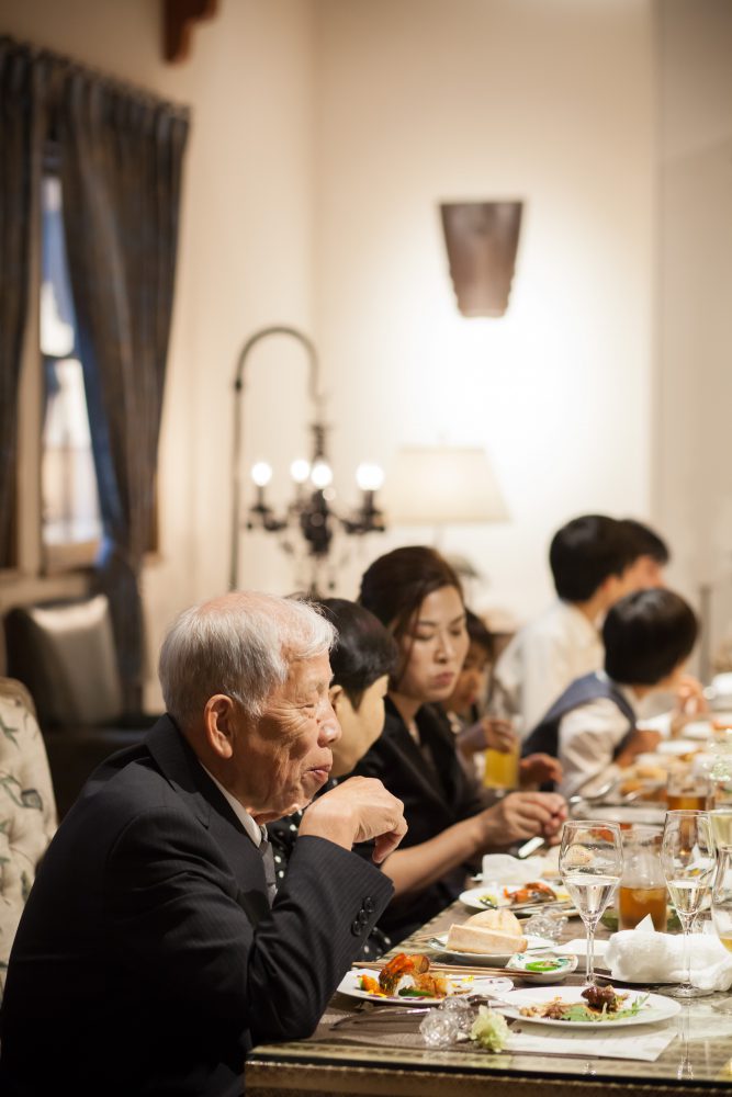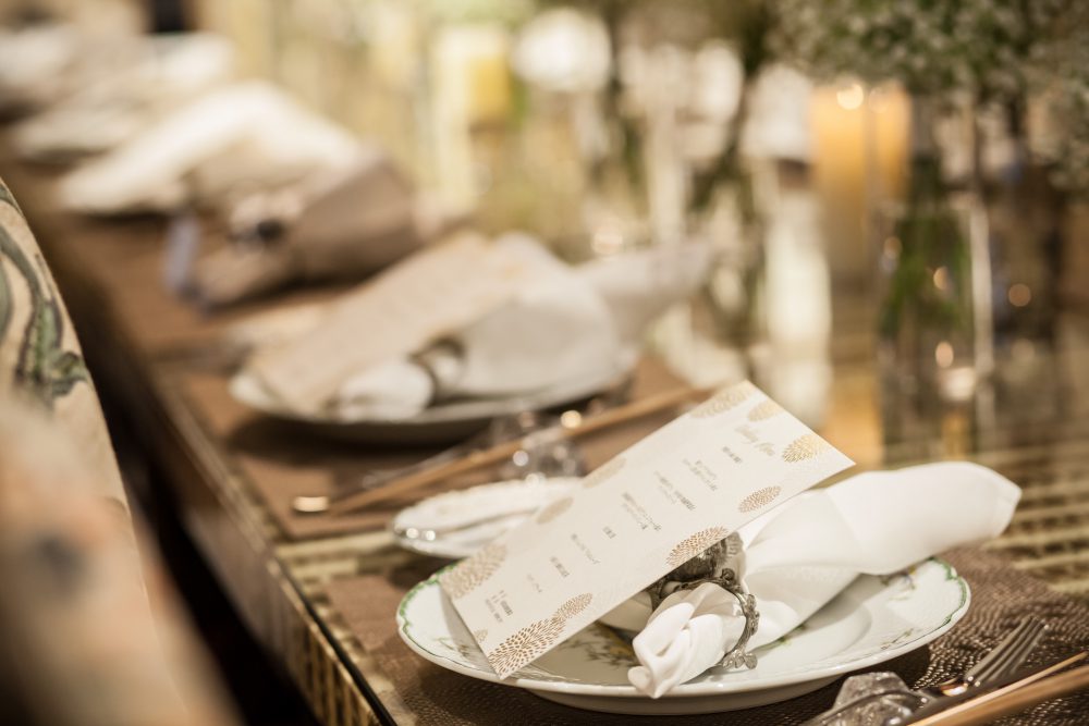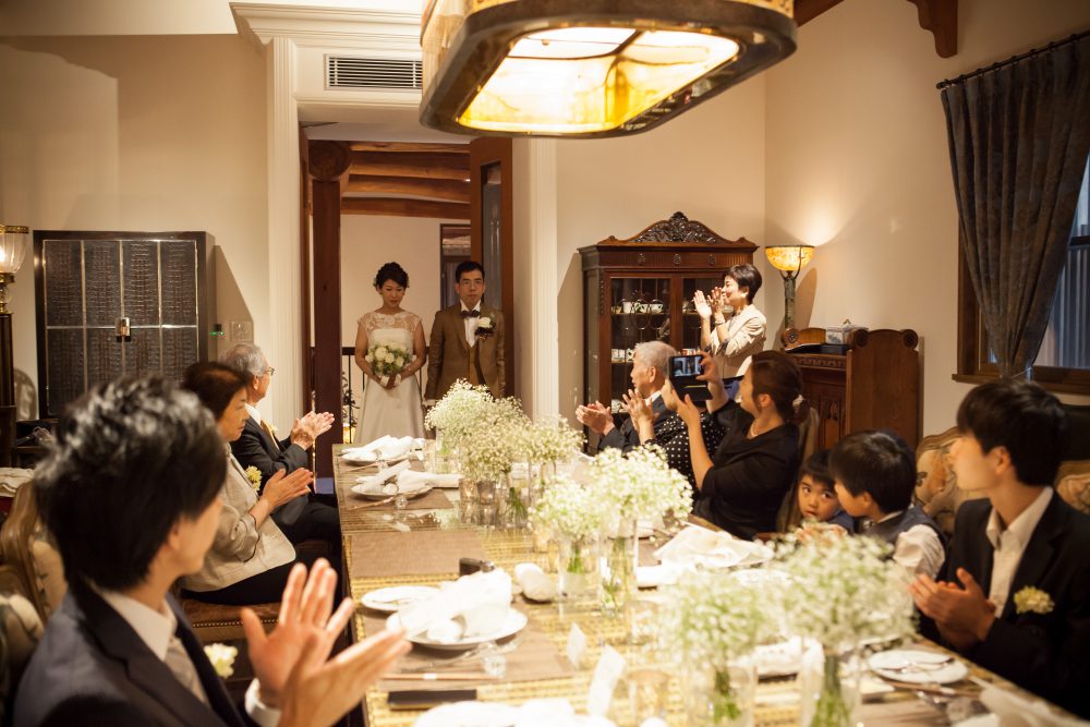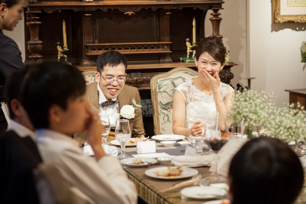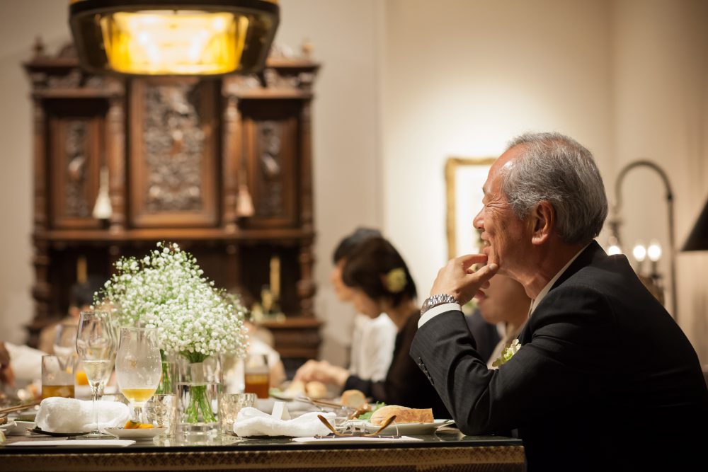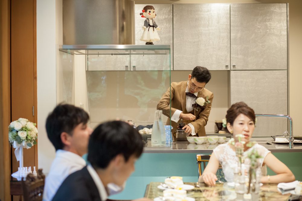ゲストとおふたりのペースでゆっくりと会話とお食事を楽しむ時間。当たり前のようですが、普通の結婚式ではなかなか味わえないもの。キーワードが「時」のおふたりらしいお食事会となりました。