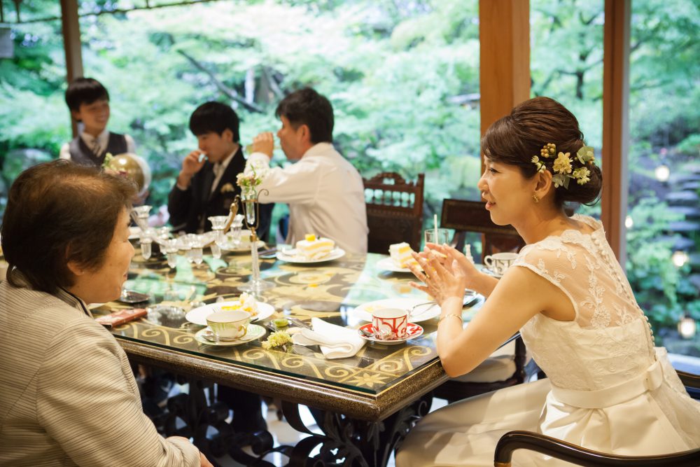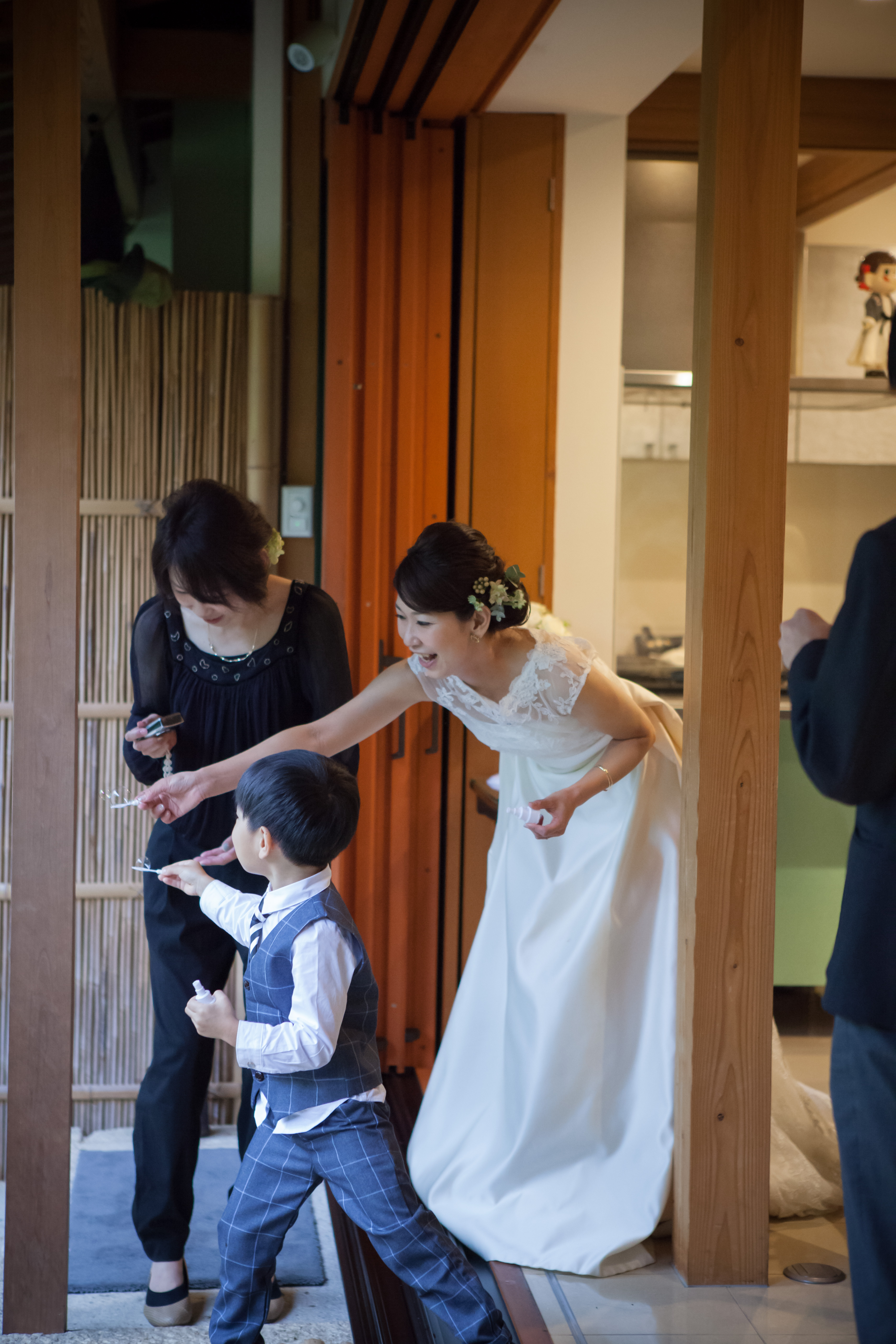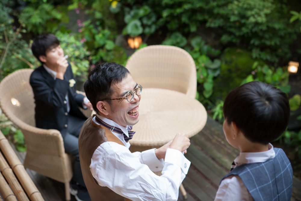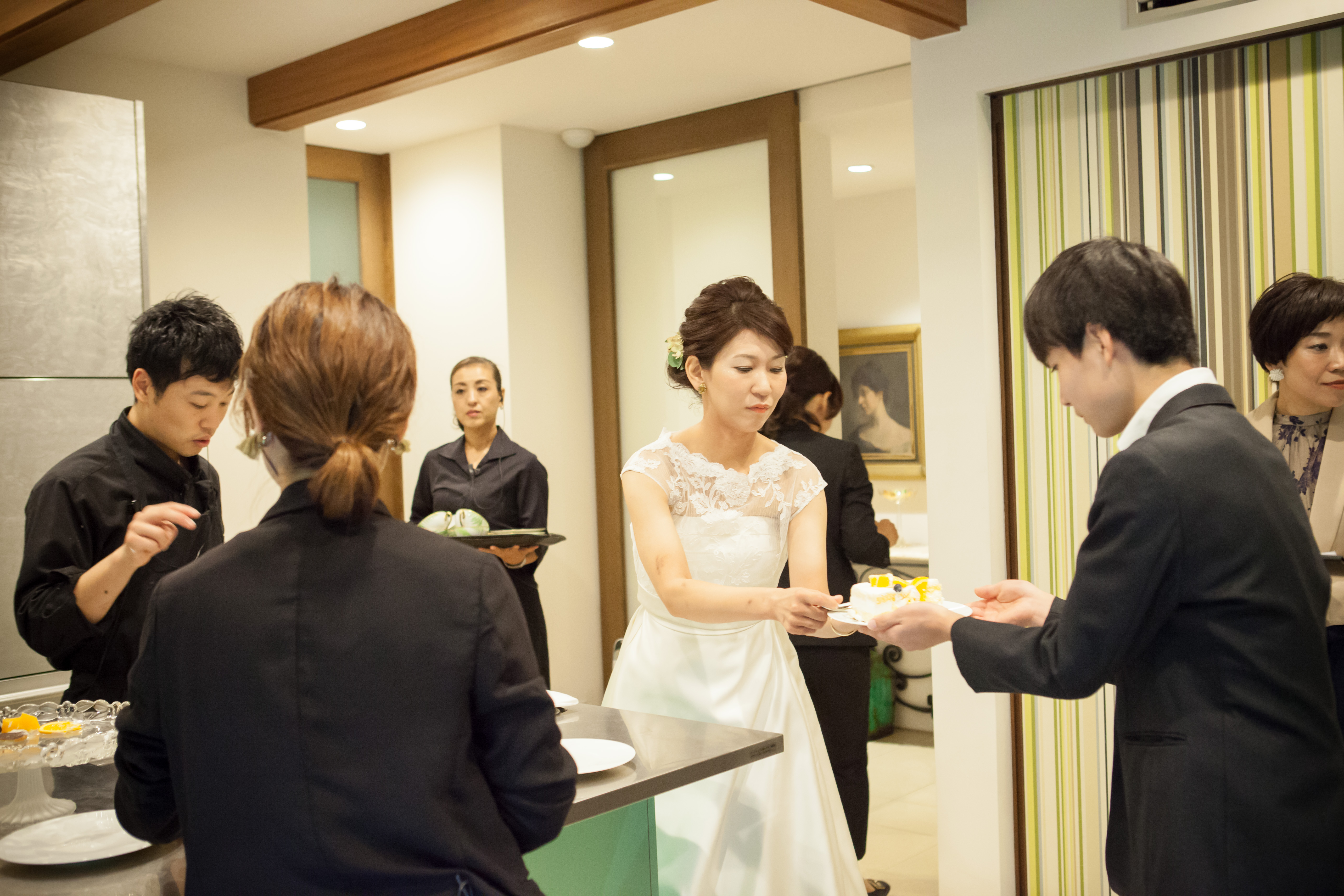 子供たちは新郎様があちらこちらに隠されたプレゼントを探したり、シャボン玉で遊んだり、と大忙し。お父様を中心とした男性陣はゆっくりお酒を召し上がり、新婦様や女性陣はスィーツとお話を満喫されていました。