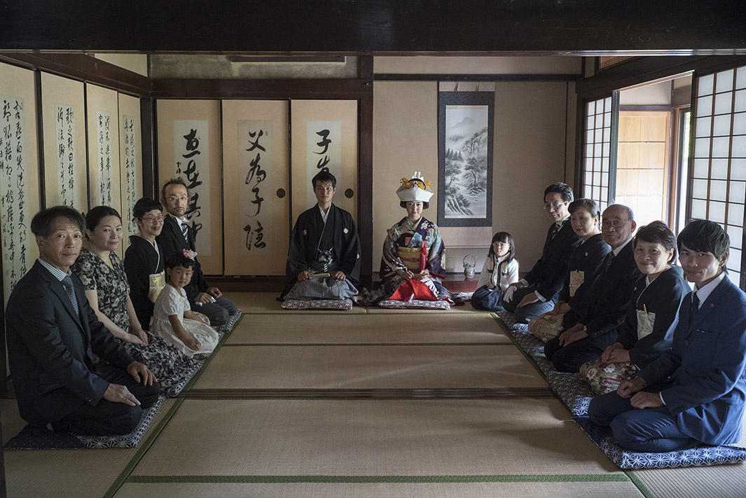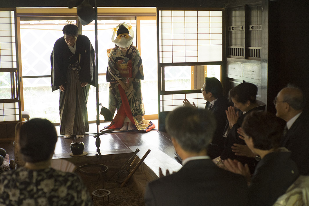 その茅葺が覆う住居のなかで、家族や大切な人達に見守られた結婚式。